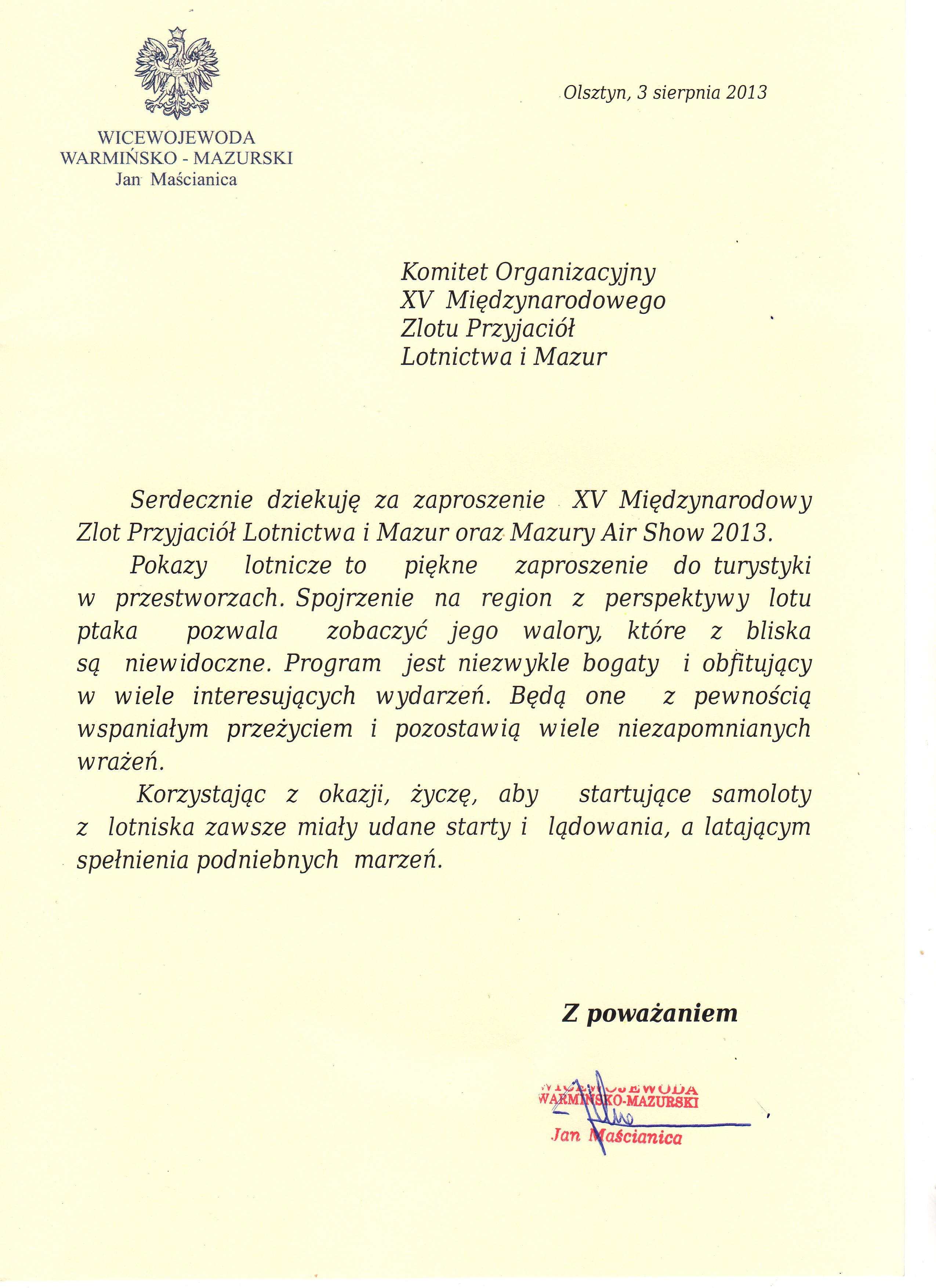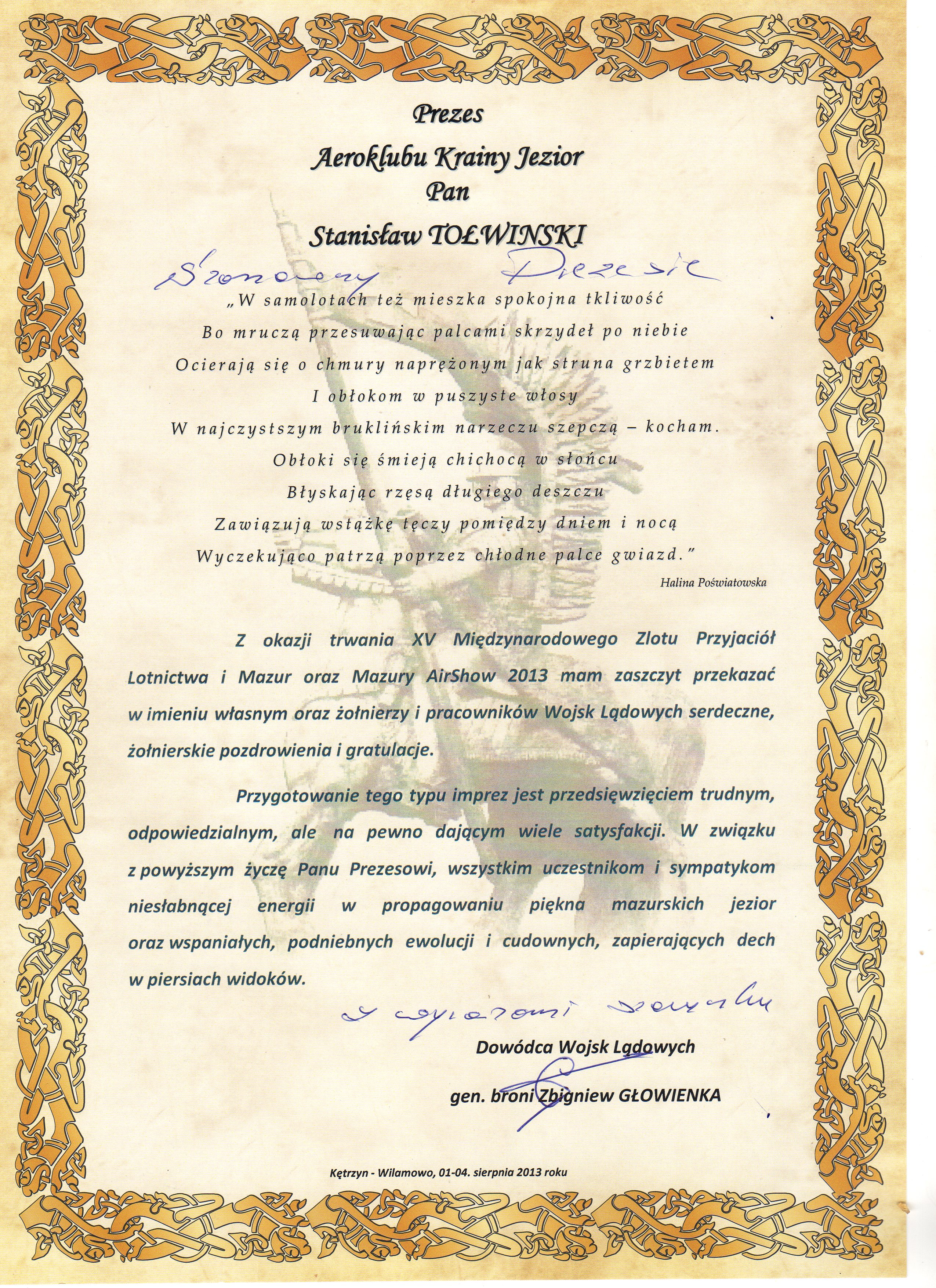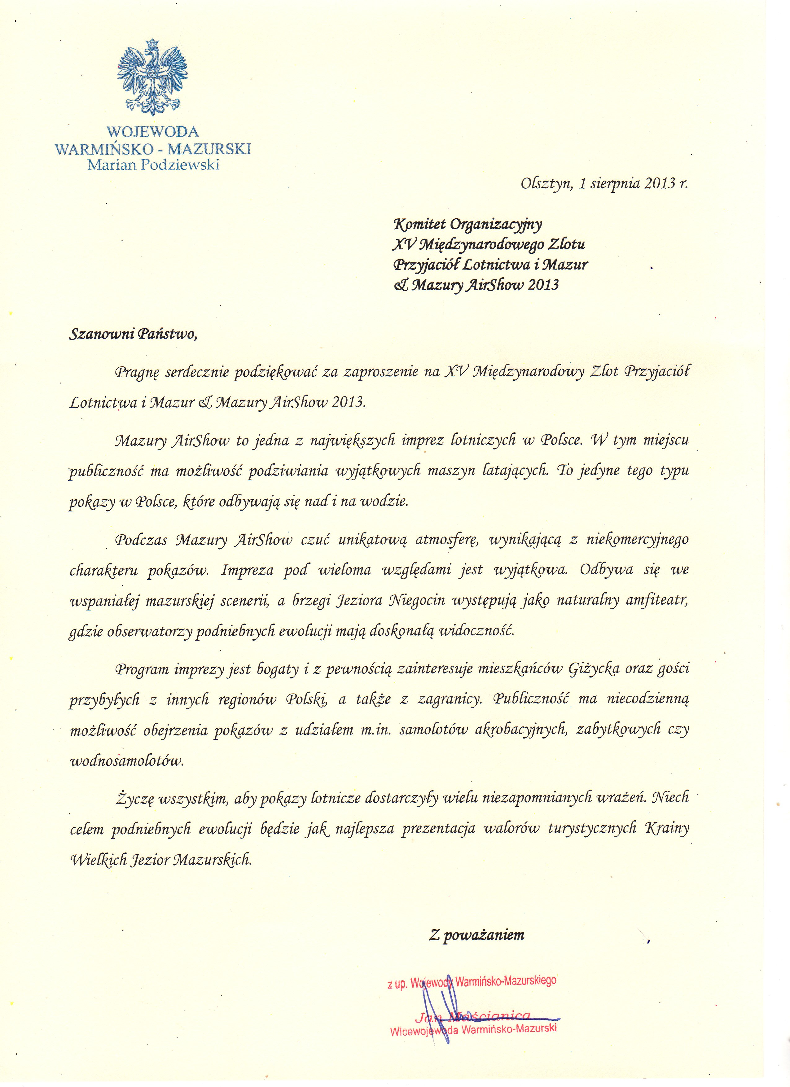 Kłaniam się nisko wszystkim współtwórcom Mazury AirShow 2013, partnerom,