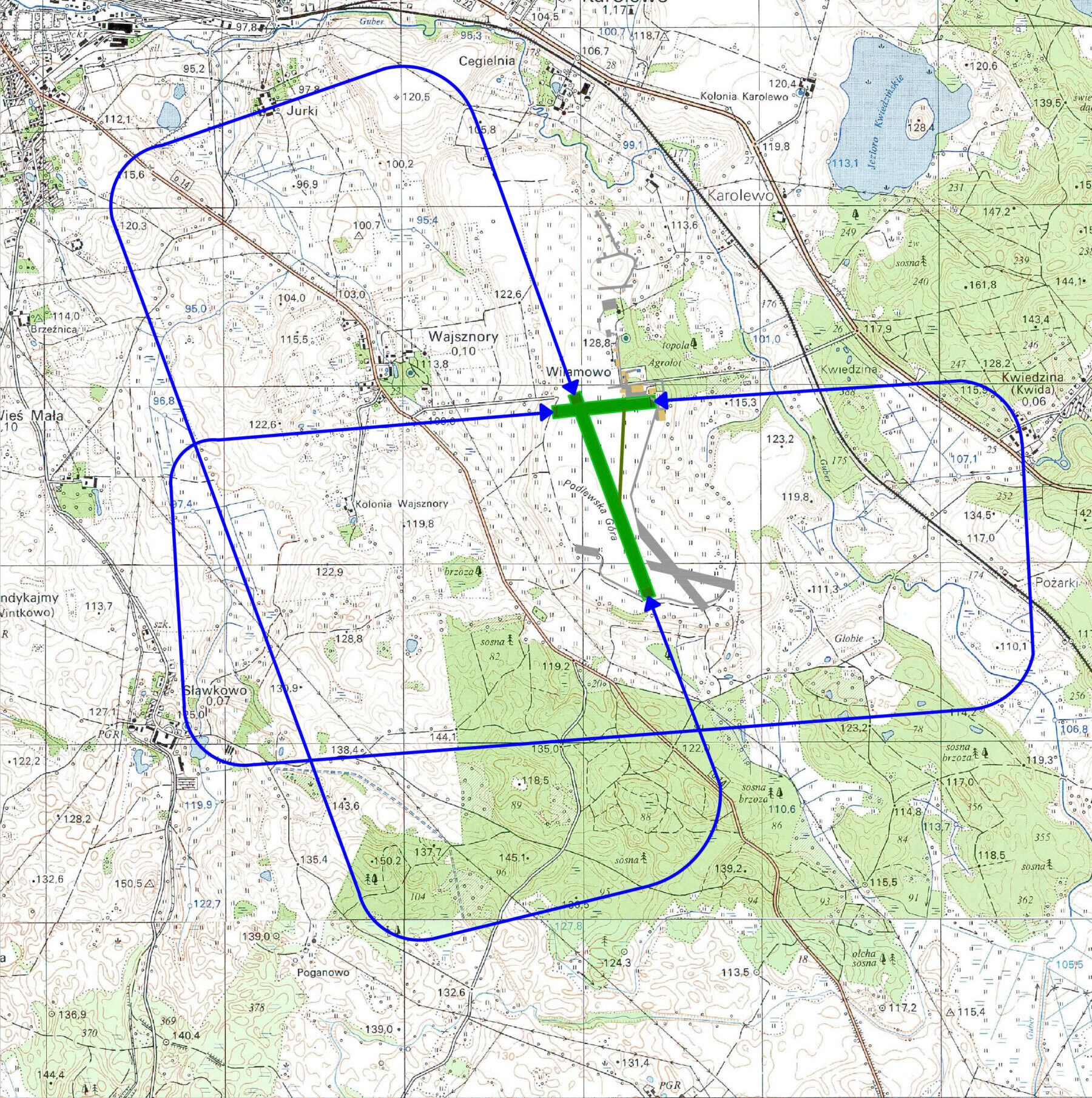 - Lotnisko nie posiada istotnych przeszkód wysokościowych.