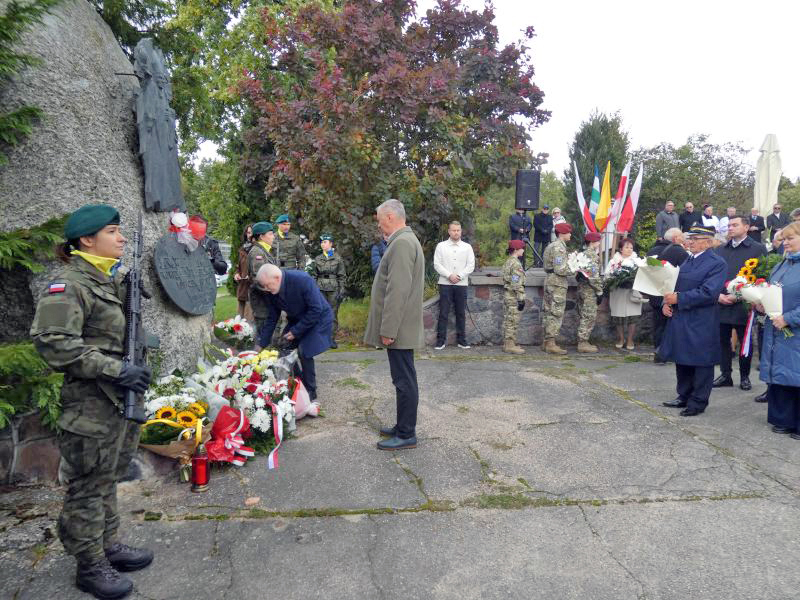 Poczty sztandarowe Akowców, Sybiraków, kompanie honorowe jednostek wojskowych z Giżycka, Węgorzewa i Straży Granicznej, władze państwowe i samorządowe oraz licznie zabrana ludność z regionu, uczestnicząc w odsłonięciu obelisku oddała hołd pamięci Wielkiemu Polakowi. Uroczystość zakończona mszą polową w hangarze lotniczym w otoczeniu samolotów z udziałem chóru z kościoła pw. Św. Katarzyny i orkiestry wojskowej były bardzo podniosłym i wzruszającym elementem.