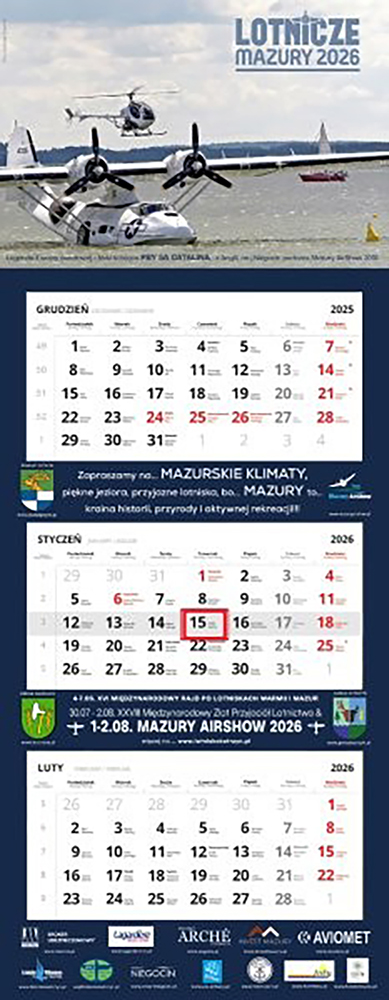 Wzorem wielu lat, Aeroklub Krainy Jezior przygotował kolejny kolekcjonerski kalendarz na nowy rok w formie i temacie mazursko – lotniczym pn. „Lotnicze Mazury 2026”.