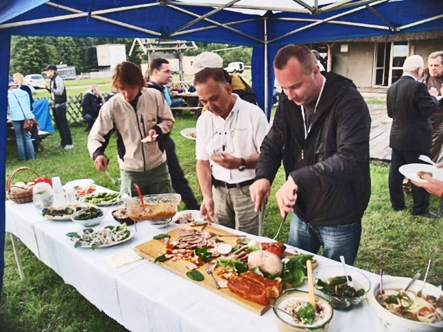 smaczne posiłki – własny wyrób pierogów, placki ziemniaczane z jabłkami prosto z patelni, wojskowy bigos, a na deser ciasto drożdżowe.