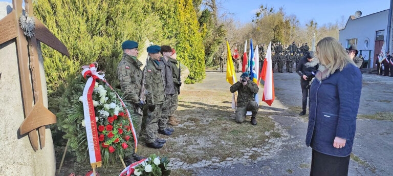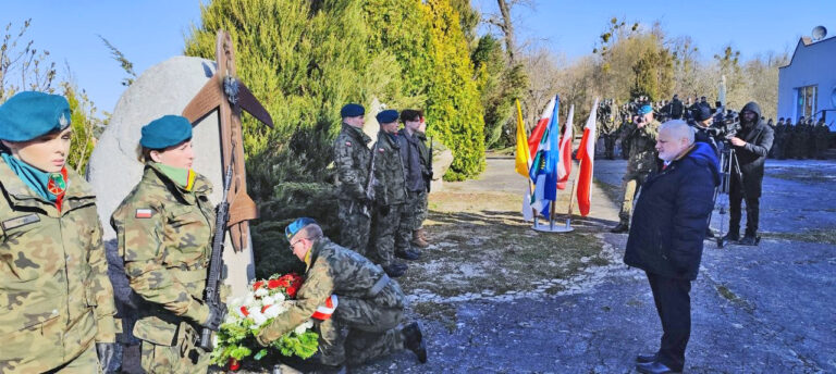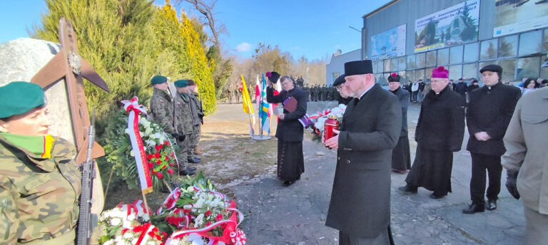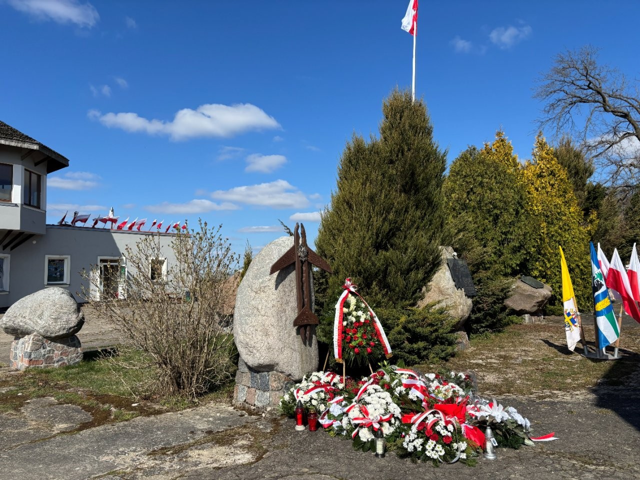 Aktem końcowym uroczystości było złożenie kwiatów pod obeliskiem pamięci ofiar … Jako pierwsze zostały złożone imponujące wieńce w imieniu Marszałka Sejmu Pana Włodzimierza Czarzastego, Kancelarii Senatu, Marszałka Województwa Warmińsko Mazurskiego, Dowództwa Generalnego RSZ. Osobiście złożyli kwiaty duchowni z abp dr Józefem Górzyńskim, delegacje jednostek wojskowych z regionu, lokalnych samorządów, szkół, instytucji oraz osób które wystąpiły w imieniu własnym.
